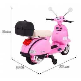 Skuter Vespa elektryczny dla dzieci Różowy + Kółka pomocnicze + Audio + Ekoskóra + EVA + Wolny Start